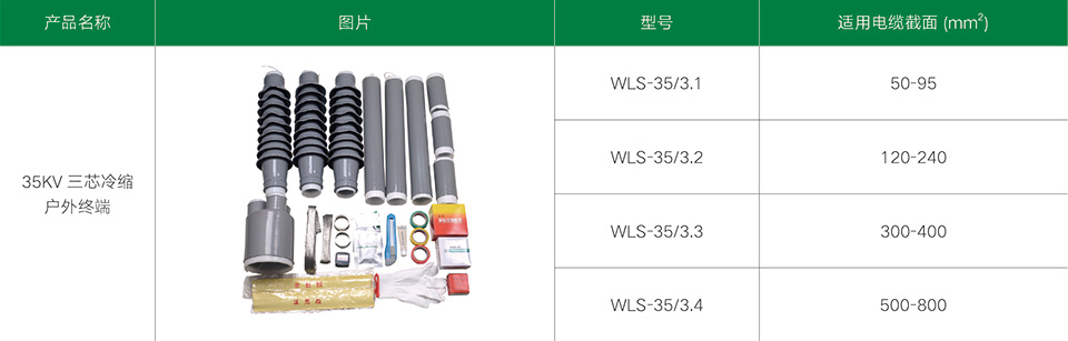 35kV三芯冷縮電纜附件系列產(chǎn)品,適用于21/35、26/35kV三芯聚乙烯和交聯(lián)聚乙烯電力電纜。冷縮電纜附件采用進(jìn)口液態(tài)硅橡膠材料制造而成,不但具有十分優(yōu)良的電氣性能,而且還具有優(yōu)異的憎水性、高彈性、使用壽命長及恒定的收縮壓力等物理特性。采用冷縮電纜附件,無需明火及特殊工具,只需輕輕抽取塑料支撐條即可,就能自動收縮復(fù)位,安裝非常方便于工作。具有良好的電氣性能和機械性能,能在各種惡劣的環(huán)境條件下長期使用。具有重量輕、安裝方便等優(yōu)點。廣泛地應(yīng)用于電力、石油、化工、冶金、鐵路、港口和建筑各個領(lǐng)域。