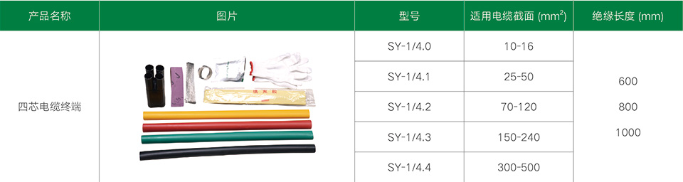 1KV熱縮電力電纜終端頭、中間接頭系列產(chǎn)品,集防水、應力控制、絕緣于一體。具有良好的電氣性能和機械性能,能在各種惡劣的環(huán)境條件下長期使用。具有重量輕、安裝方便等優(yōu)點。廣泛地應用電力、石油化工、治金、鐵路港口和建筑領域。