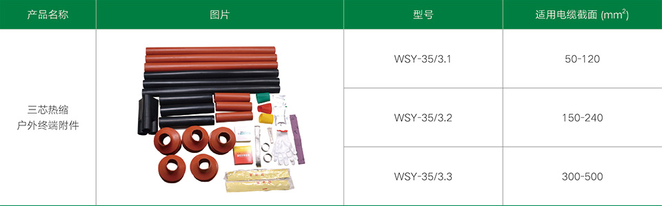 35KV三芯熱縮電纜終端附件是一種用于高電壓(35千伏)三芯電力電纜的終端連接和絕緣保護(hù)設(shè)備。它適用于三芯電力電纜的終端部分,用于連接電纜與設(shè)備或配電系統(tǒng),并提供可靠的電纜絕緣和連接性能。35KV單芯熱縮電纜終端附件廣泛應(yīng)用于高電壓(35千伏)電力配電系統(tǒng)中,用于連接和絕緣保護(hù)單芯電力電纜的終端部分。