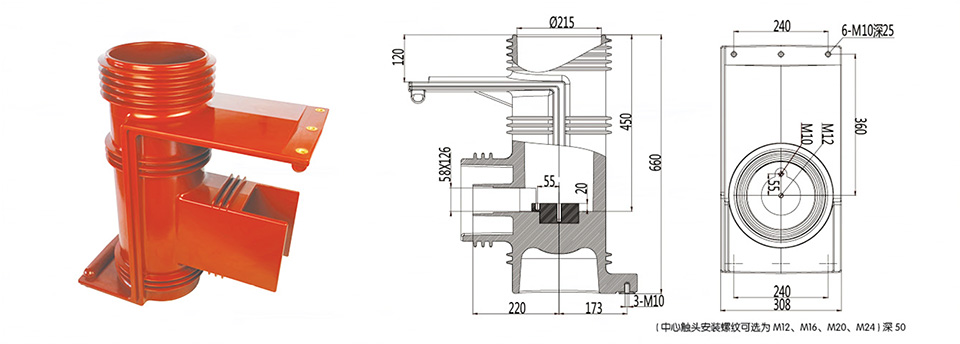 觸頭盒為環(huán)氧樹脂APG工藝壓力凝膠成型結(jié)構(gòu),用于各種手車式開關(guān)柜,起絕緣隔離和聯(lián)接過渡作用。
