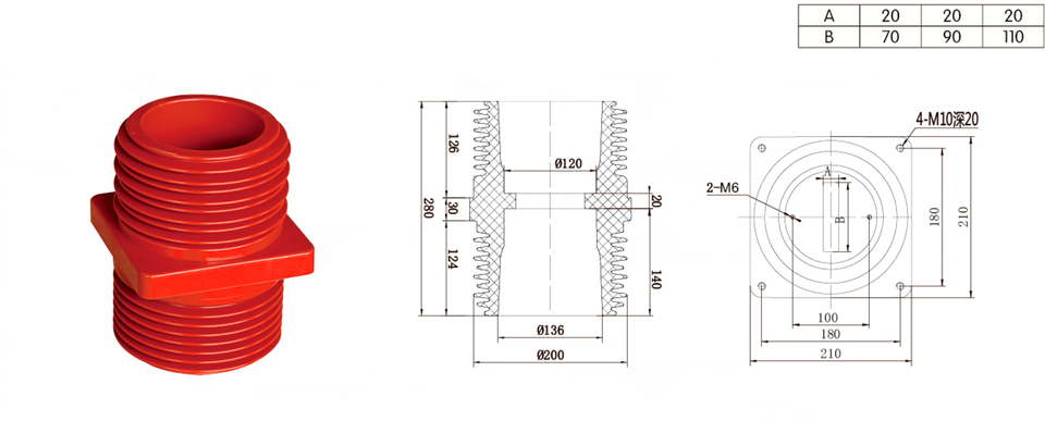 Home > Products > 24KV Bushing > TG3-24Q/180 * 180 wall bushing of central cabinet