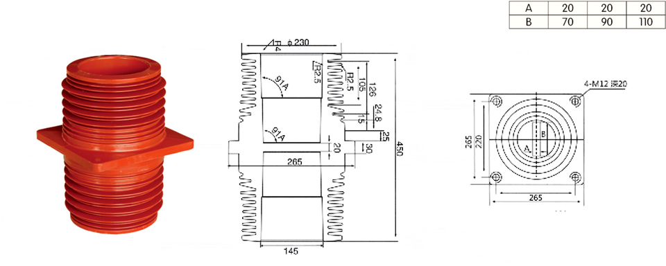 TG3-35Q/220 * 220 * 450 middle cabinet wall bushing