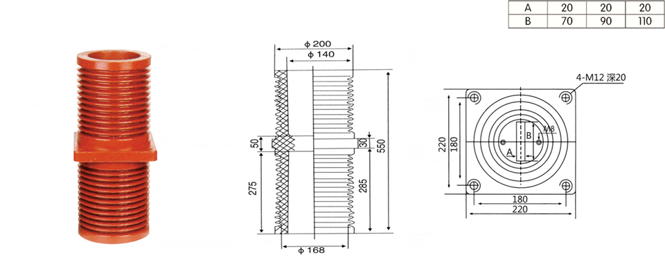 TG3-35Q/220 * 220 * 450 wall bushing of central cabinet TG3-35Q/180 * 180 * 550 wall bushing of central cabinet