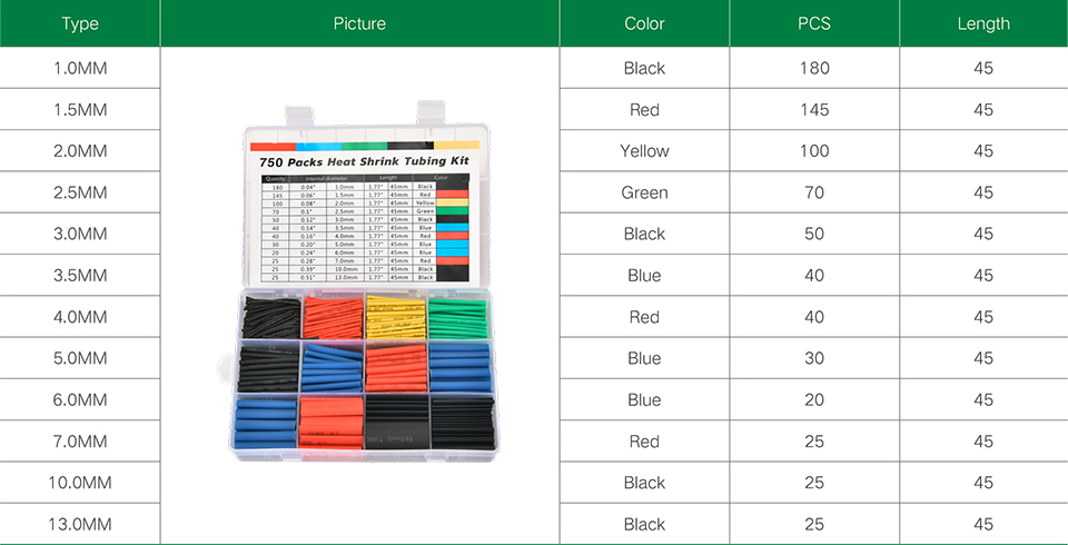 Home > Products > Household heat shrink tubing set > Heat shrink tube set 750PCS (boxed)