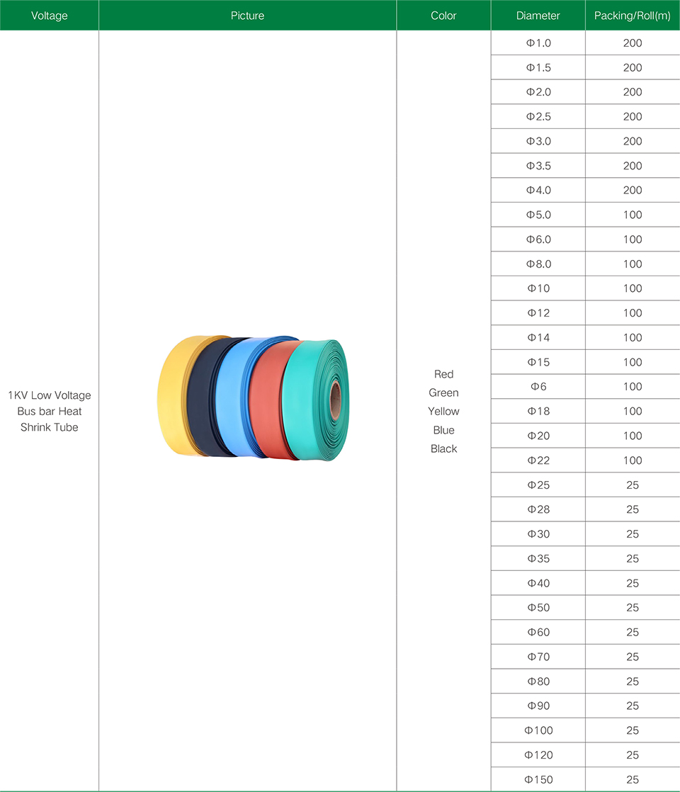 Shrink busbars are available in a variety of sizes and sizes to accommodate busbars of different sizes and shapes. Users can choose the right heat shrinkable busbar tube according to actual needs to ensure complete coverage and insulation effect.