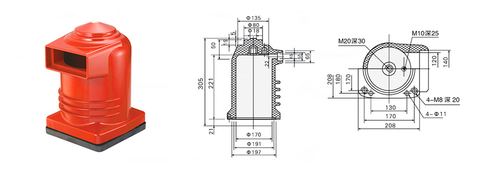 Contact box is an epoxy resin APG process pressure gel molding structure, which is used in various handcart switch cabinets and plays the role of insulation isolation and connection transition.